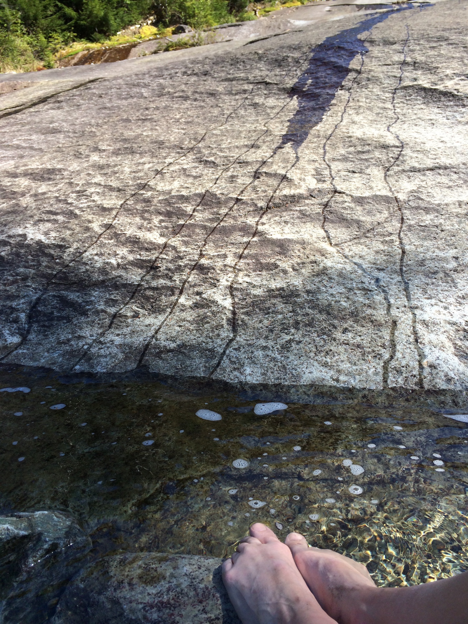 Going back down was easier on the lungs and muscles but my knees were screaming by the time I reached the base of the slide. Luckily all the water streaming down created some nice (freezing cold) pools. Nothing feels better than a quick soak and change into fresh socks.
