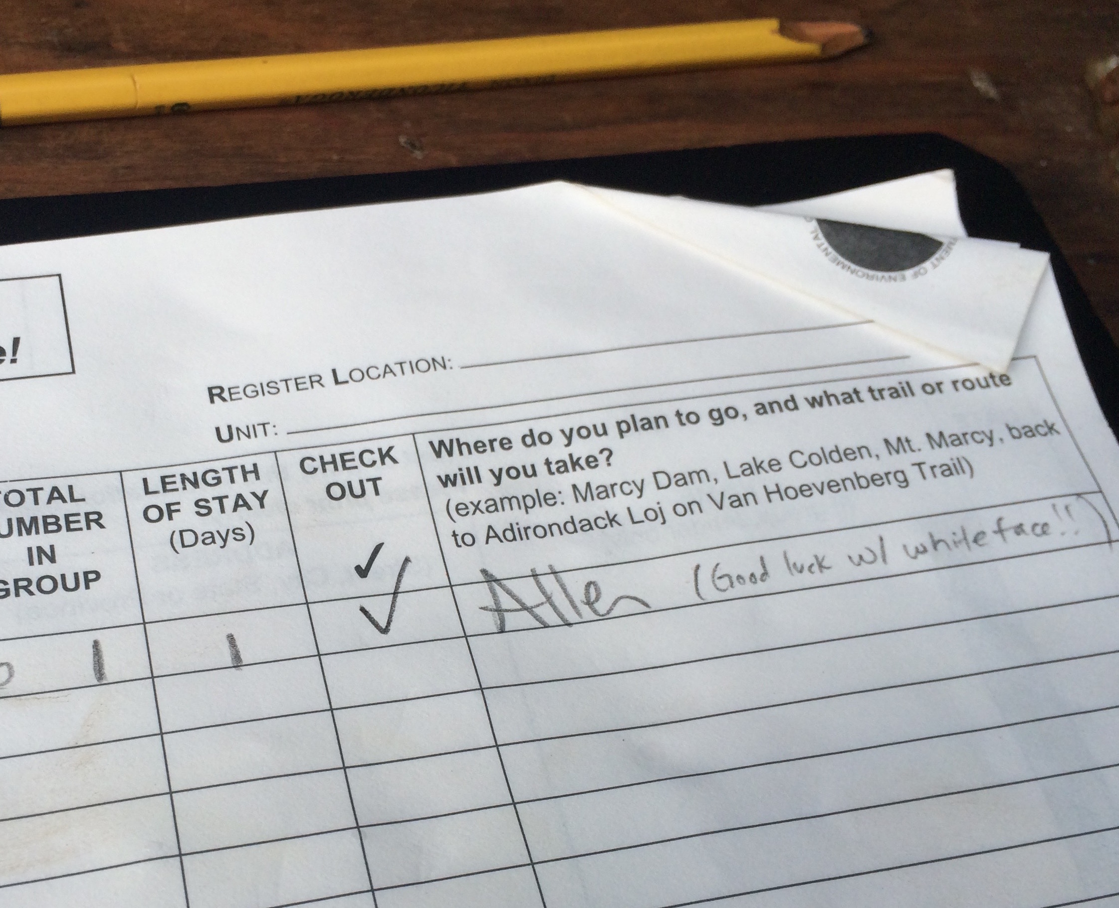 A few memories of the day, was meeting a man hiking down with a group, celebrating his 46. Nice job!! And having chatted with a couple at the parking lot earlier in the day, several people stopped me on the way up, asking if I was the girl who was on #45 to give me high fives. The couple also left me this cute note in the trail register. They were all kinds of awesome and brought a smile to my face numerous times. I simply love the people I meet on the trail and kinship that develops hiking the ADK46.